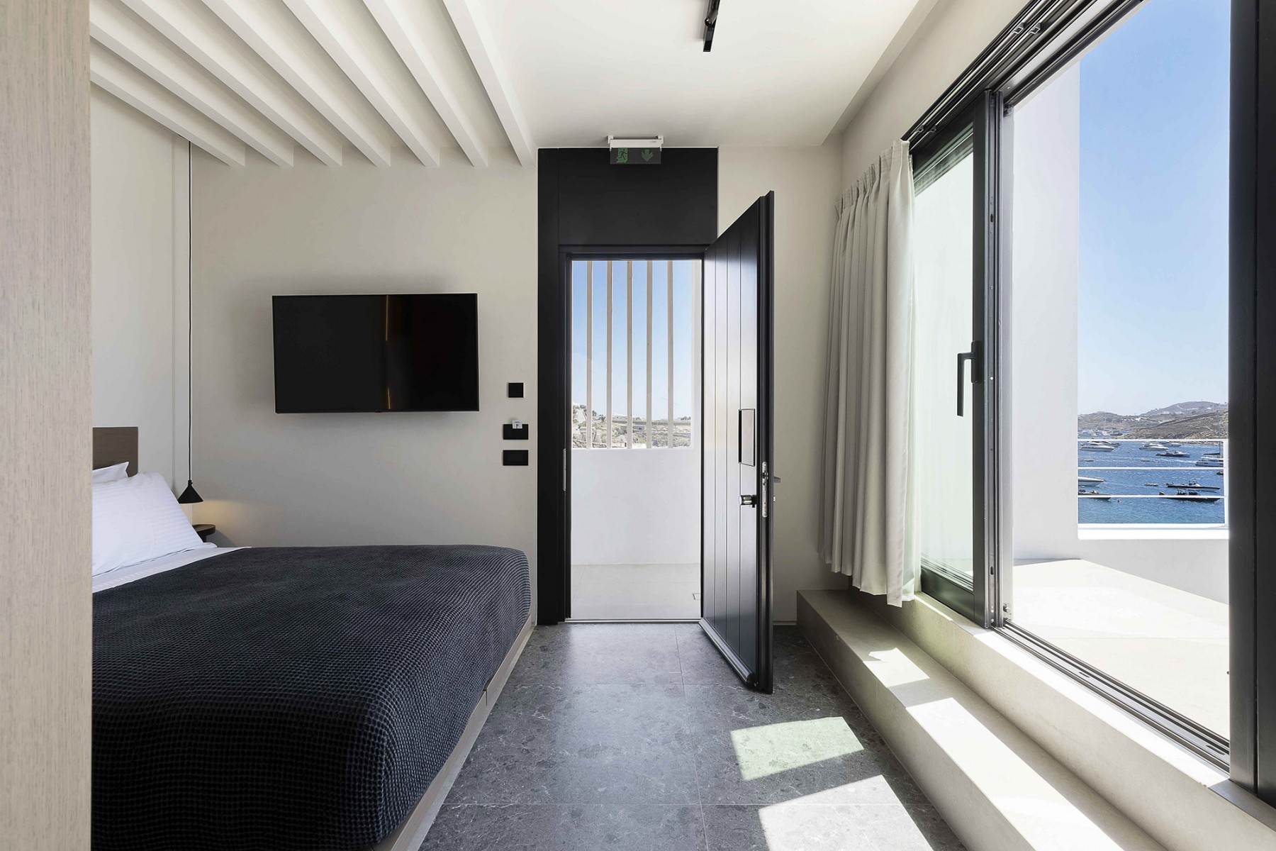 Are you in love with waking up in the morning and gazing through the window to the vastness of the sea? Then our Superior Room with Sea View is just the place for you! Modern aesthetics, inspiring architecture and luxurious amenities, along with a private swimming pool allowing you to enjoy the cool while overlooking the beach and the azure waters of the Aegean. Yes, this is magic in Mykonos!